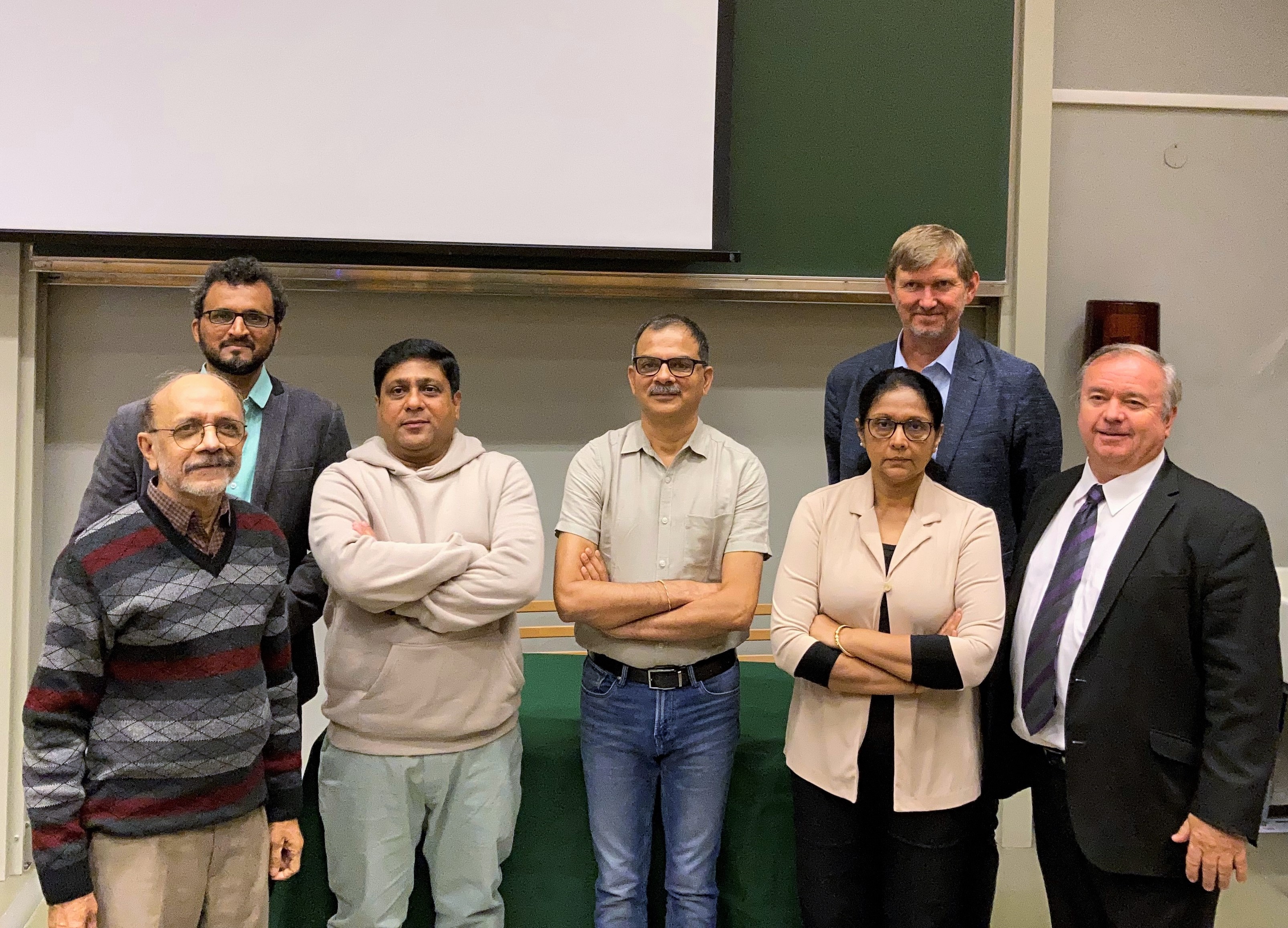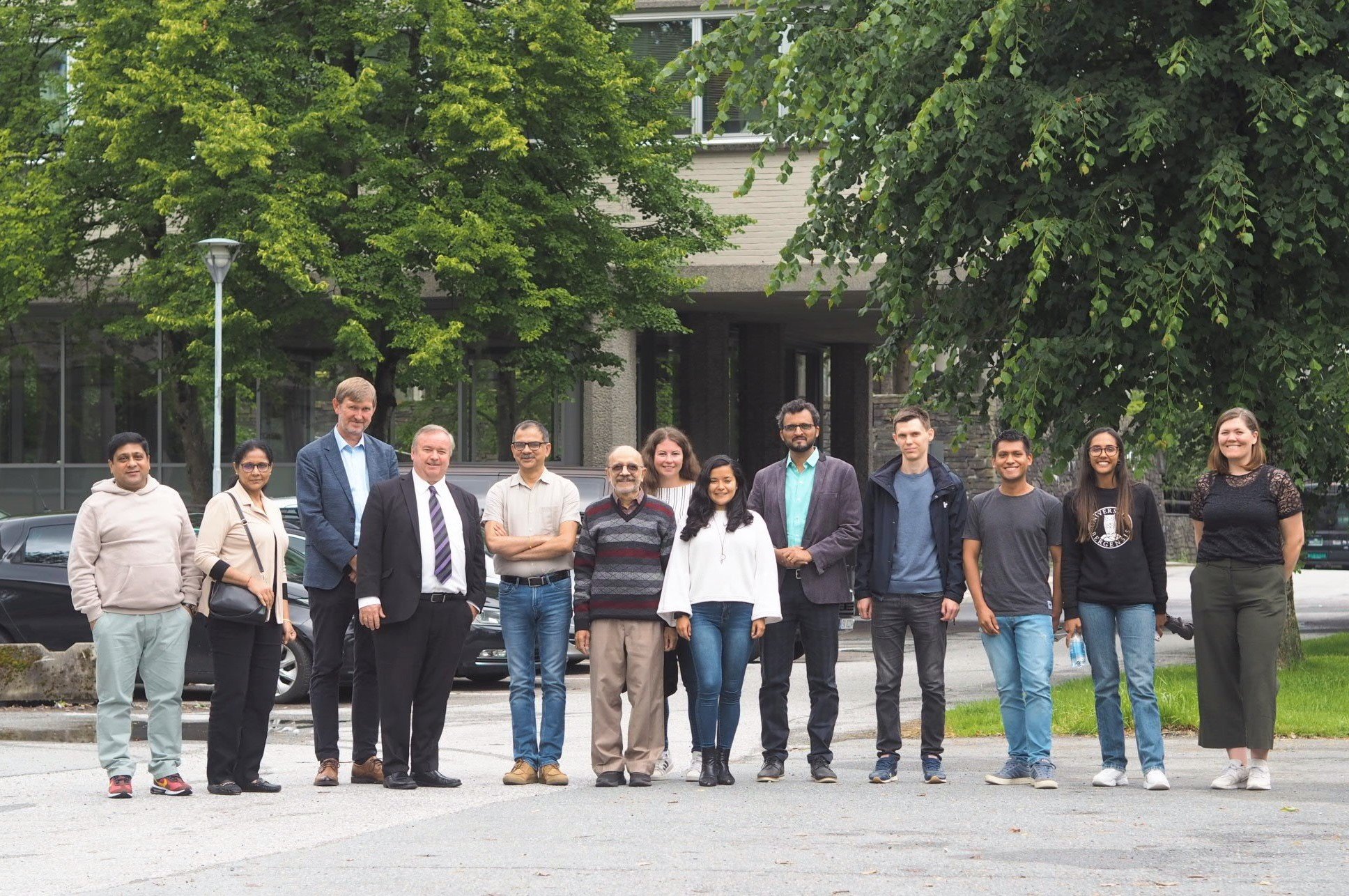 right: Prof. William Mohanty, Prof. Swati Neogi, Vice-Dean Øyvind Frette, Prof. Arne Graue, Director Shalivahan, Prof. Sudarsan Neogi, Aleksandra Magdalena Sæle, Jacquelin Elizabeth Cobos Mora, Prof. Sandeep Kulkarni, Edgar Frank Viveros Acosta, Maria Camila Benjumea Garcia, and Bergit Brattekås.